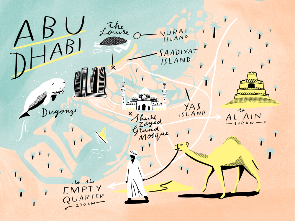 What else can I say? This is a small illustrated map of Abu Dhabi.