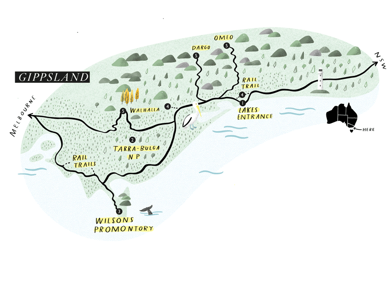 A series of maps for a travel feature covering on less visited pockets of Australia.